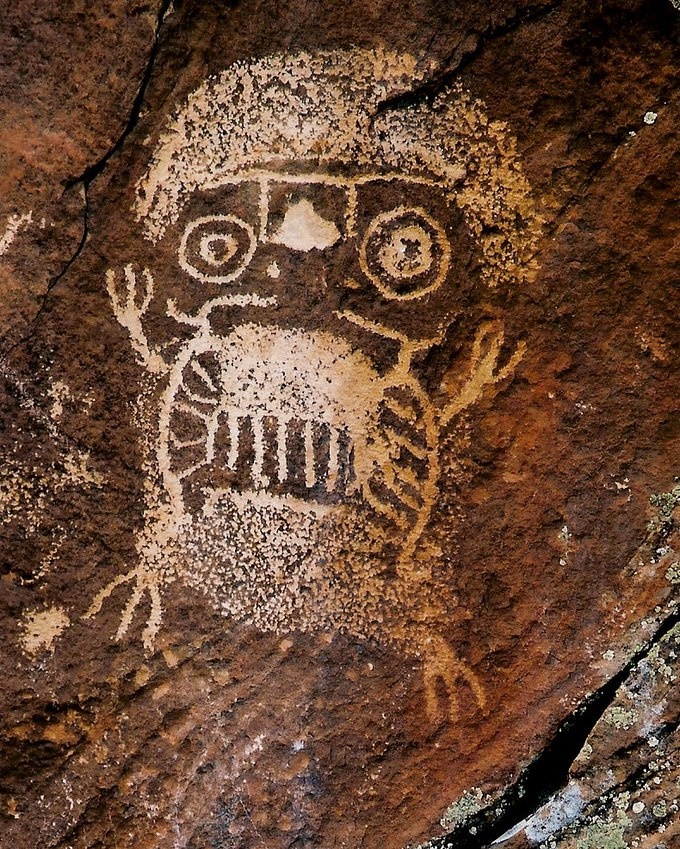 Попугай Кеша и Сова из «Винни-Пуха»? На самом деле на снимках от Scott Burgan и Randy Langstraat из Flickr показаны наскальные рисунки, или петроглифы. Они были обнаружены в районе каньона Найн-Майл к северо-востоку от Веллингтона в американском штате Юта. Эти рисунки относят к первому тысячелетию до нашей эры. Кстати, оба петроглифа — это совы. Просто первая маленькая. Совенок.