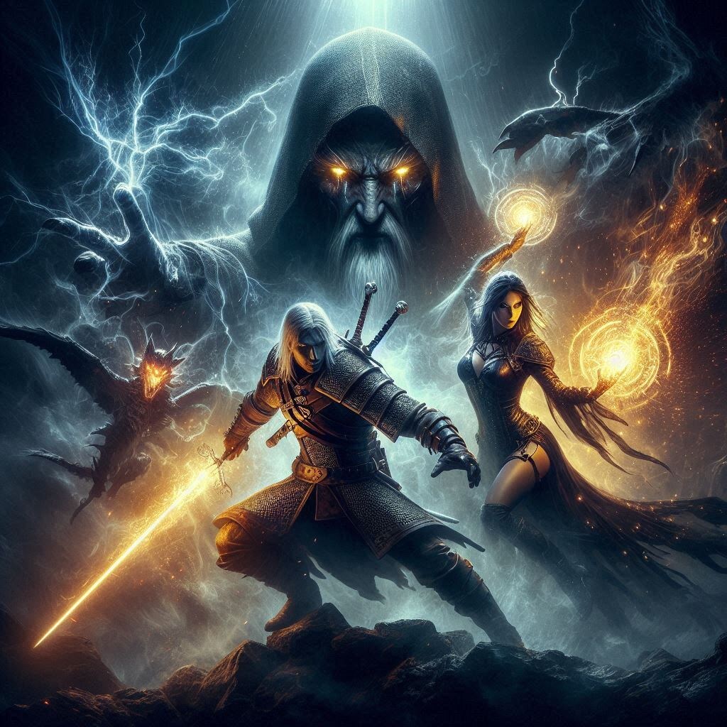 Ночь медленно окутывала заброшенные руины крепости, когда ведьмак, ещё не до конца оправившись от видений и древних тайн, услышал в тишине шелест лёгких шагов. Из тени между разрушенными колоннами вышла женщина, одетая в тёмно-синюю мантию, отбрасывавшую мерцающие отблески при каждом её движении. Её взгляд был загадочен и полон противоречий — в нём мелькали как боль утрат, так и решимость исправить прошлое. Она тихо произнесла: - Я давно ждала встречи с тобой, ведьмак. Судьба сыграла свою роль, и наши пути пересеклись не случайно. Ведьмак мгновенно нахмурился, не скрывая осторожности: - Кто ты, чтобы проникать в моё путешествие столь незваным присутствием? Имя твоё окутано мифами, и страх, который оно вызывает, не мал. Зачем ты пришла сюда? Незнакомка мягко улыбнулась, словно зная ответ на вопрос, который тревожил его душу: - Люди зовут меня Селестия, но имена — всего лишь слова, лишённые истинного веса в мире, где главное — поступки. Я пришла прекратить страдания этих невинных людей и
