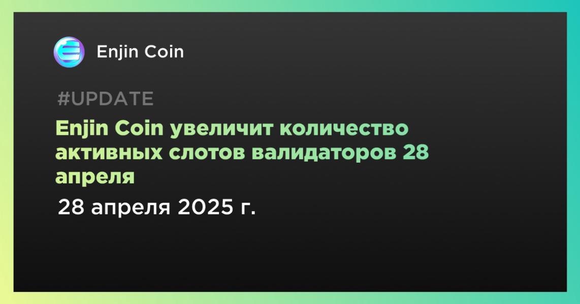 Enjin Coin увеличит количество активных слотов валидаторов 28 апреля