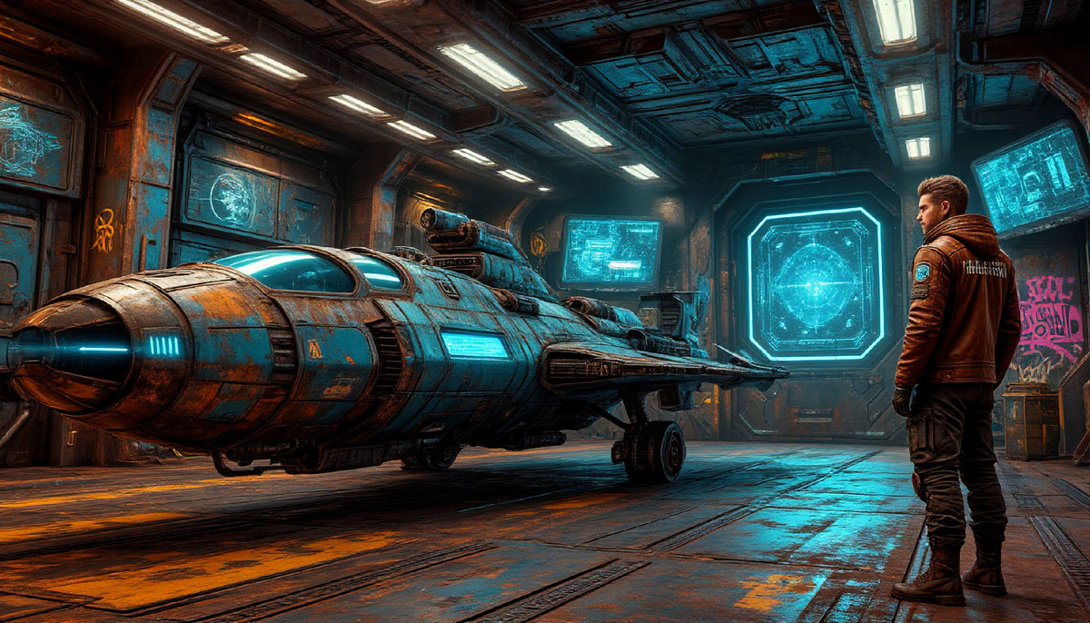 Док-порт гудит, вокруг снуют механики в потрёпанных комбинезонах. В воздухе — запах смазки и озона.