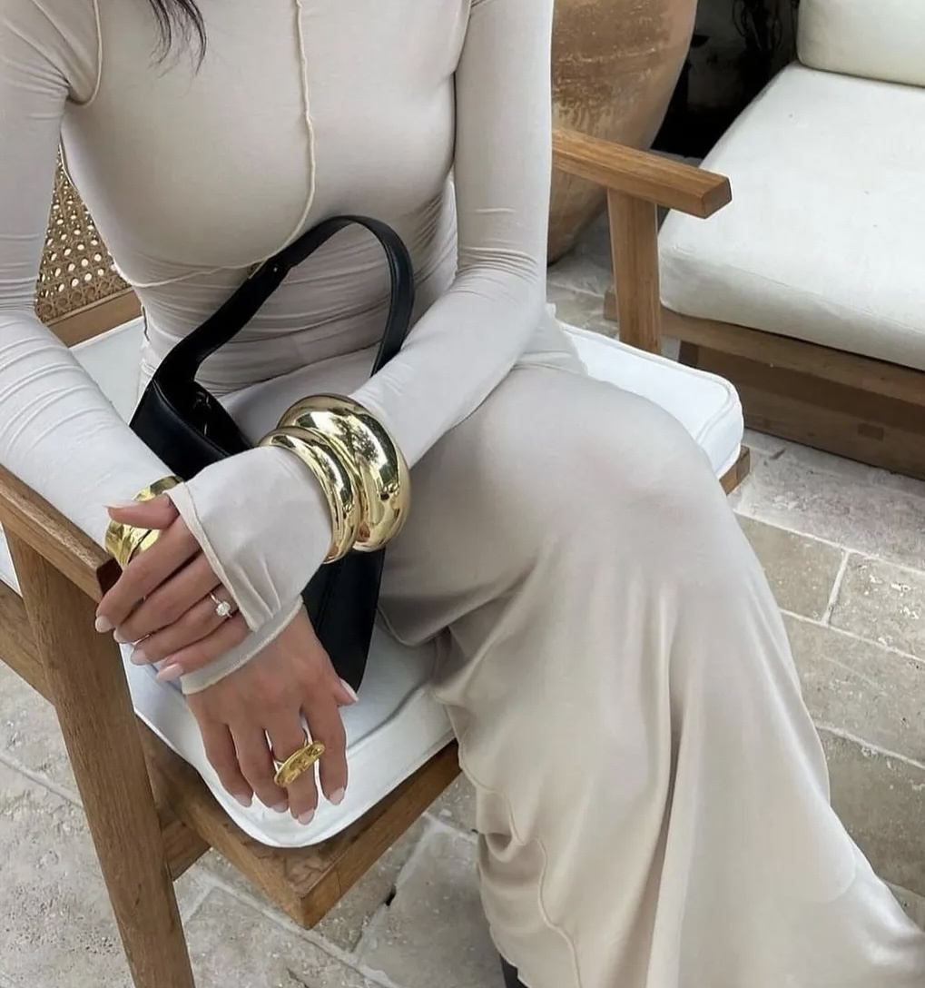 Спорим я смогу вас убедить, что вам и покупать ничего не придется – все тренды уже есть в вашем гардеробе, осталось только покопаться и придумать с ними классные образы. В этом сезоне стилисты отказываются от скромных украшений, маленькие серьги и тонкие колечки они откладывают на потом, а вот броские, большие и яркие украшения берут на заметку. Теперь образ строится именно вокруг украшений, а не нарядного платья. Эффектнее будет выглядеть та, которая отлично умеет сочетать базовую белую футболку, простенькие джинсы и целую кипу бижутерии. Ладно, не буду вас томить, поехали смотреть, какую конфетку для нас приготовили модные дома. Подобным трендом нас не удивить, жесткие браслеты давно мелькают на модных показах. Лично мне они напоминают эпоху Клеопатры, особенно, когда такие браслеты надевают на предплечье. Массивные браслеты можно надеть на запястья, на предплечье, и даже на щиколотку. Стойкий браслет отлично освежит даже самый простенький образ. Выглядит эффектно, а главное тренд