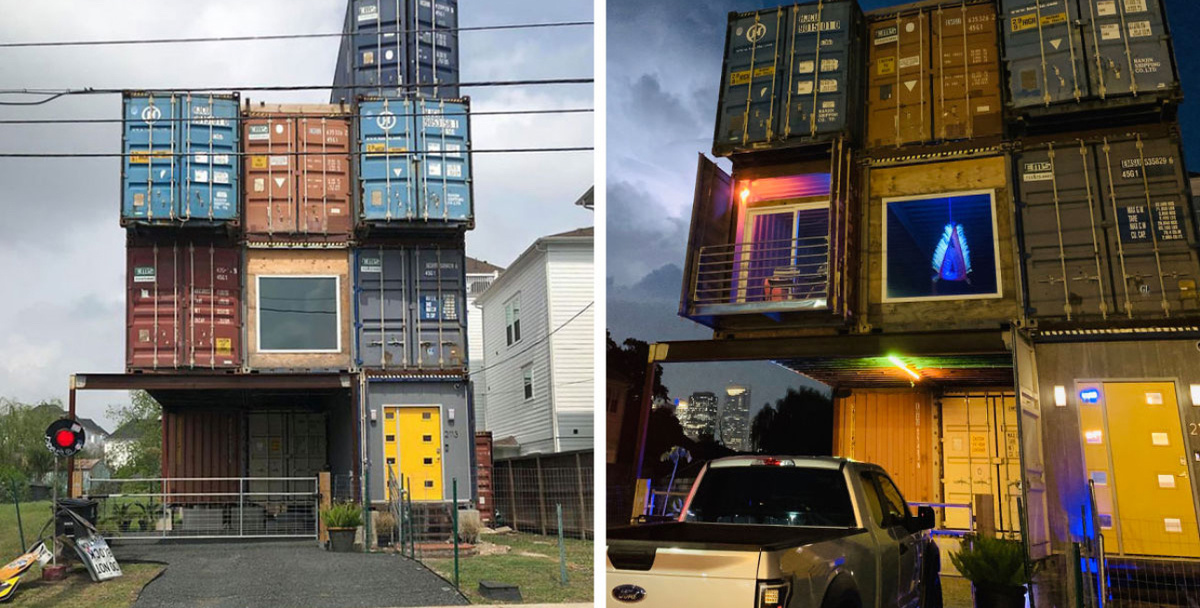 Современные технологии и современный рынок — это будто две очень разных вещи. Вам предлагают совсем не то, что хочется, хотя вокруг полно примеров, как можно сделать иначе и во сто крат лучше. Дизайнер Уильям Брю поразмыслил и решил выстроить дом своей мечты по новому принципу. Снаружи это просто куча старых морских контейнеров, чем они и являются, а вот внутри — роскошное и при этом недорогое жилье мечты! Домик построен легально и официально, он расположен в Хьюстоне и считается одним из самых крупных подобных сооружений в частном использовании. Контейнеры поставлены друг на друга и по три в ряд, они образуют сложную трехэтажную конструкцию. Брю воспользовался тем, что сами контейнеры очень прочны, поэтому они могут спокойно нависать над землей, опираясь на пару балок, а пространство под ними стало подобием гаража. Идея у дизайнера появилась еще в начале века, много лет назад. Он заказывал несколько проектов строительным организациям, но тогда никто с контейнерами толком не