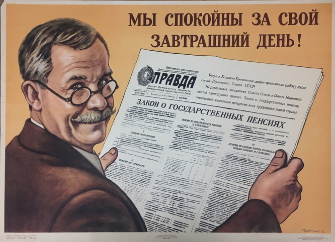 Сталин лично пишет и подписывает этот документ: «Право на пенсию имеют: а) Мужчины, достигшие 60-летнего возраста; б) Женщины, достигшие 55 летнего возраста. Лица, занятые на подземных работах, 50-летнего возраста». 3. «Пенсия по старости предоставляется независимо от состояния трудоспособности» 4. «Пенсия назначается в размере половины прежнего заработка пенсионера».