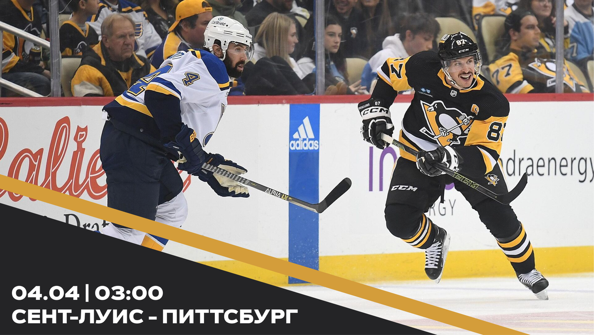 В пятницу, 4 апреля, состоится матч плей-офф НХЛ между «Сент-Луисом» и «Питтсбургом». Встреча пройдёт в одноимённом городе на стадионе «Энтерпрайз» в 03:00 по московскому времени. После 76 матчей «Сент-Луис» занимает восьмое место, набрав 89 очков в Западной конференции. «Питтсбург» после 75 игр расположился на 13-строчке, заработав 71 балл в Восточной конференции. «Сент-Луис» Подопечные Джима Монтгомери выдают потрясающий отрезок из 10 побед подряд, что позволило им ворваться в топ-8. Отрыв от «Калгари», который располагается на девятой строчке, составляет семь очков при двух матчах у «Калгари» в запасе. Если бы не разница в играх, то «блюзменам» можно было бы чуть выдохнуть, но матчей впереди ещё достаточно, чтобы потерять свою восьмую строчку. В последних пяти встречах «Блюз» смогли дома разгромить «Нэшвилл» (4:1) и «Монреаль» (6:1). Также на своём льду «блюзмены» смогли в упорной борьбе добыть победу над «Детройтом» (2:1) в ОТ, В гостях же команда смогла второй раз расправиться с «