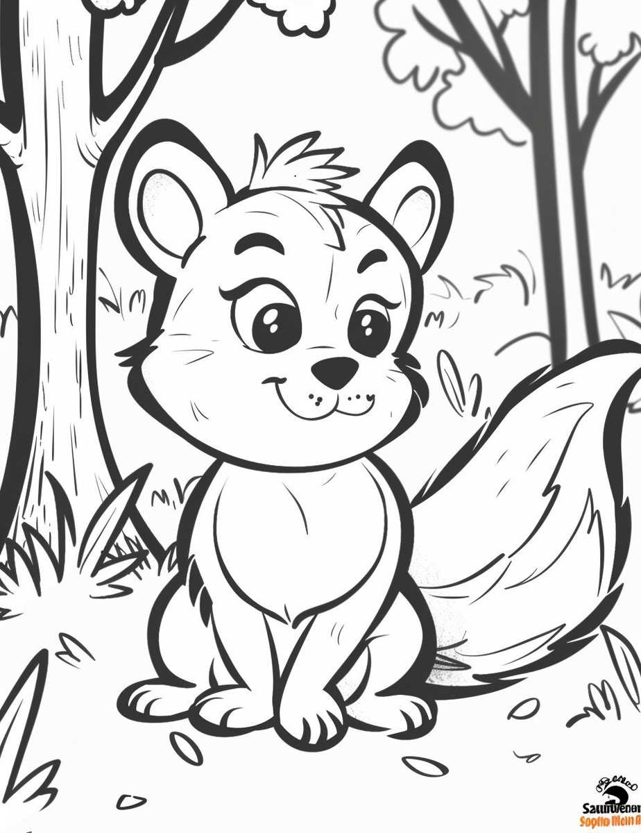 Создано на основе запроса: A simple black-and-white coloring page for toddlers (3 years old) featuring a cute cartoon savanna squirrel
