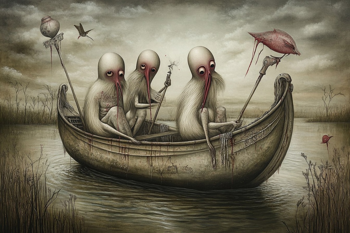 Создано на основе запроса: anton semenov paintings style, surrealism in color, tapestry, hdr, highly detailed, style raw