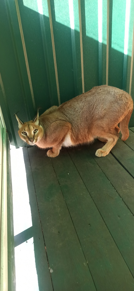 Кто с нами давно, знают, что сейчас в приюте проживает 4 диких кошки: лев, пума, рысь и каракал. Так вот, сегодня я расскажу Вам о нашей самой маленькой (по размеру) хищнице, о каракале Масяне.