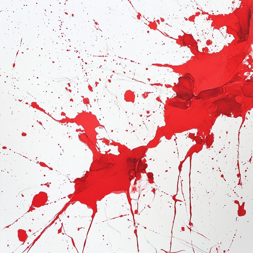 Создано на основе запроса: red goo splattered on white floor, top down view