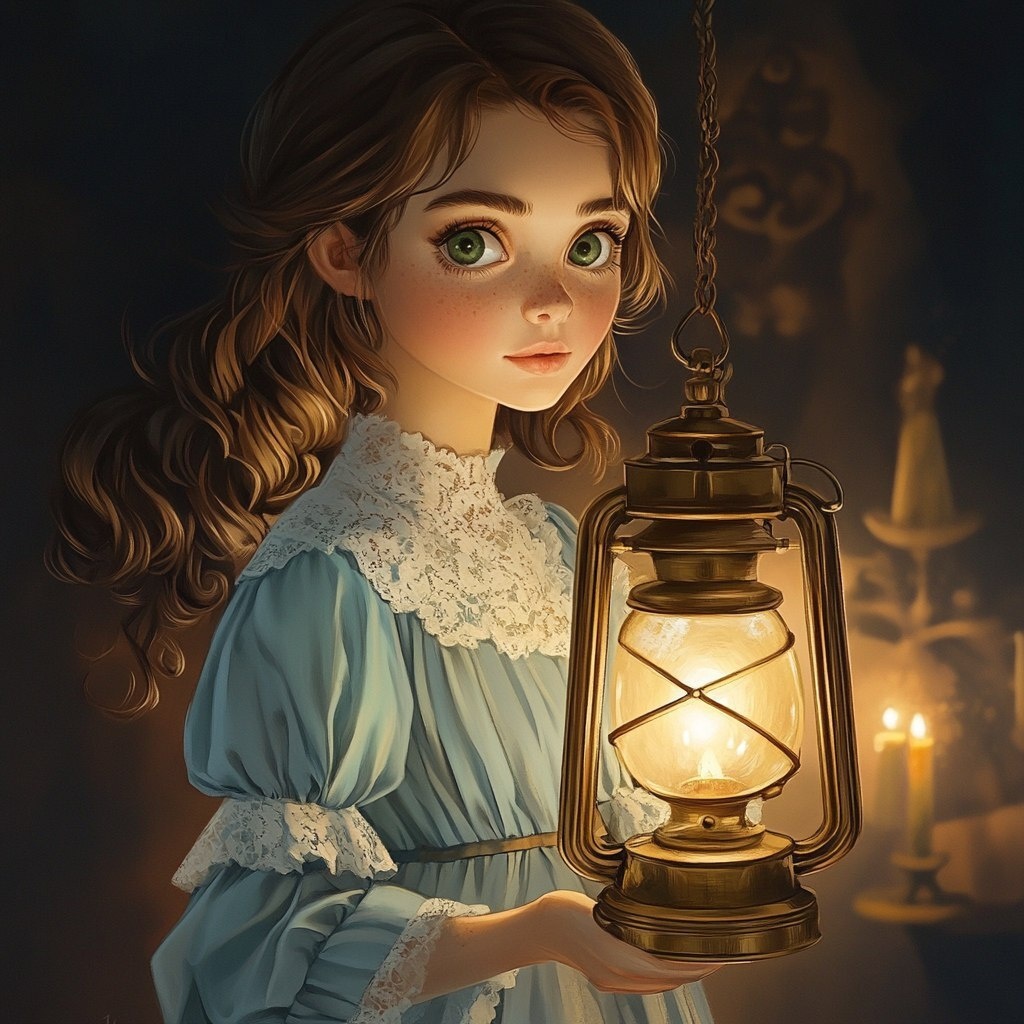 Создано на основе запроса: Grace is inside gather by family and candlelight, all the while her antique brass lantern is glowing softly. Her shoulder-length wavy brown hair frames her bright green eyes, full of determination and warmth. She wears a cozy light blue dress with white lace trim and simple brown shoes. Inside, families gather by candlelight, smiling." --- Автоперевод: Грейс находится внутри, собираясь семьей и свечами, все время ее антикварного латунного фонаря мягко светится. Что скажешь? 🤔 https://dzen.ru/id/65c0c65c86e4f837c27b24d7 #ИИ #AI #нейросеть #midjourney #art