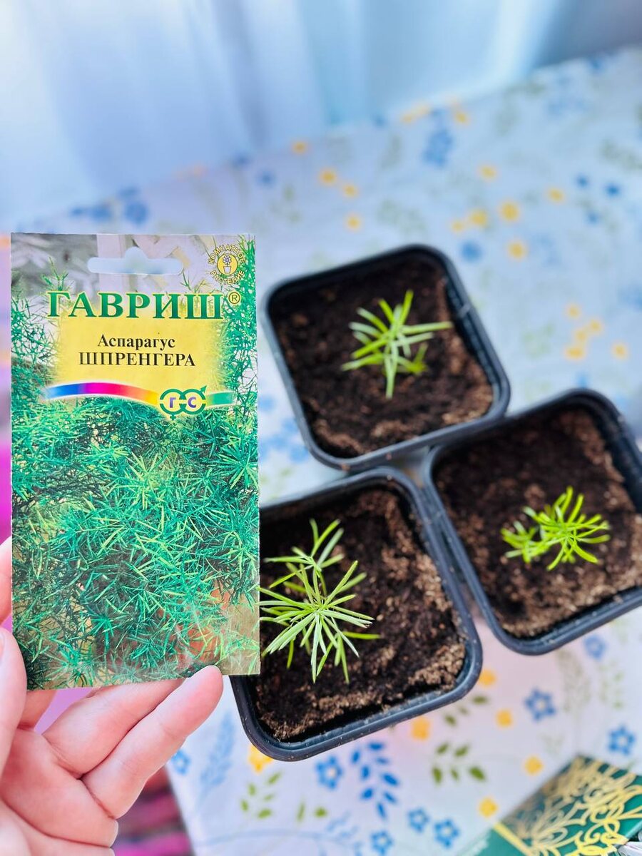 Аспарагус - это изящное растение с нежной, похожей на облако, листвой. Я вырастила аспарагус из семян и это было увлекательное и вполне осуществимое занятие. Делюсь своим опытом и секретами успеха.👇🏻 🌿Выбирайте свежие семена аспарагуса. Перед посевом замочите их на сутки в теплой воде. Это поможет размягчить твердую оболочку и ускорить прорастание. 🌿Аспарагус предпочитает легкий, рыхлый грунт. Подойдет смесь торфа, песка и листовой земли (1:1:1). Можно использовать готовый грунт для рассады, как делала я. 🌿Для посева подойдут неглубокие контейнеры, либо можно посеять сразу в емкость для рассады (объем 200-250 мл). 🌿Заполните емкость влажным грунтом, разложите семена на поверхности грунта на расстоянии 2-3 см друг от друга. Слегка присыпьте семена тонким слоем грунта (0,5-1 см). Накройте емкость пленкой или стеклом для создания тепличных условий. Разместите емкость с семенами в светлом месте. Регулярно опрыскивайте грунт теплой водой, не допуская пересыхания или переувлажнения. Еж