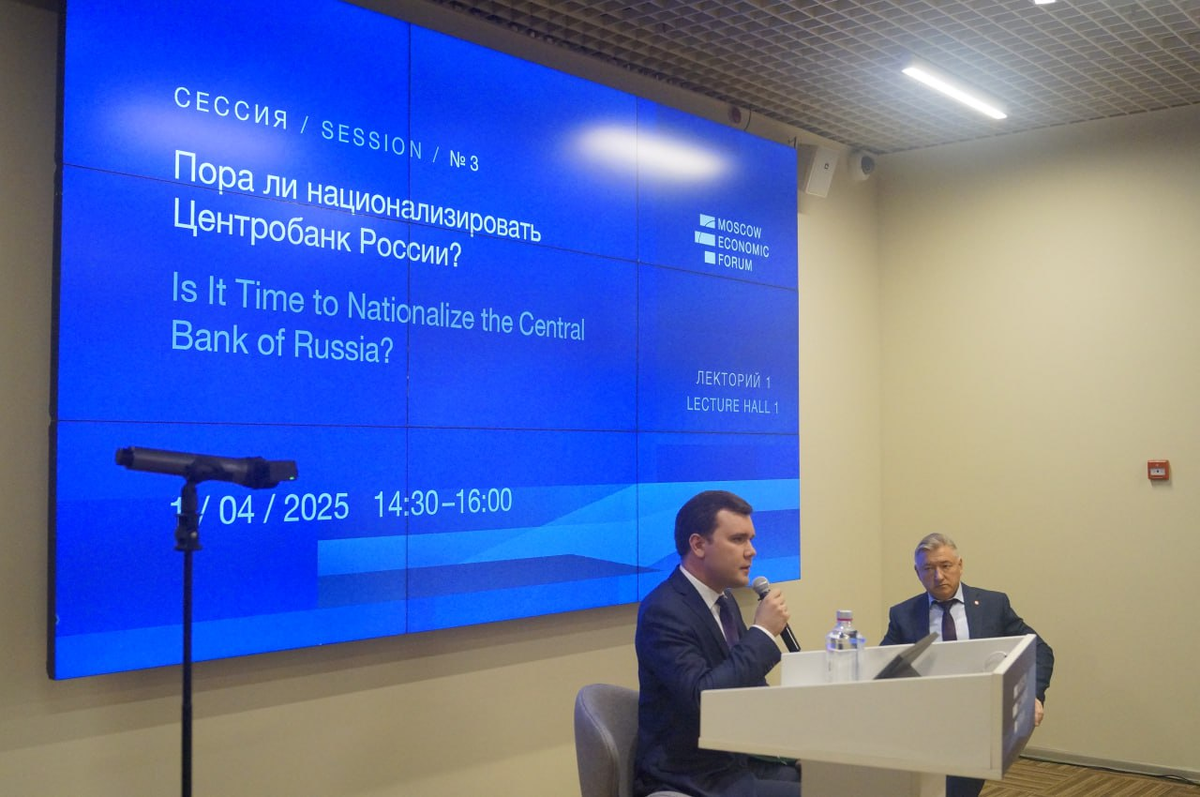 В рамках Московского экономического форума выступил на секции "Пора ли национализировать Центробанк?"