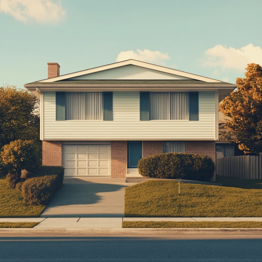 Создано на основе запроса: a hyper realistic image of the facade of a suburban middle class home. The image of the house is straight on. --- Автоперевод: Гипер реалистичный образ фасада пригородного дома среднего класса. Неплохо выглядит? 🤔 https://dzen.ru/id/65c0c65c86e4f837c27b24d7 #ИИ #AI #нейросеть #midjourney #art