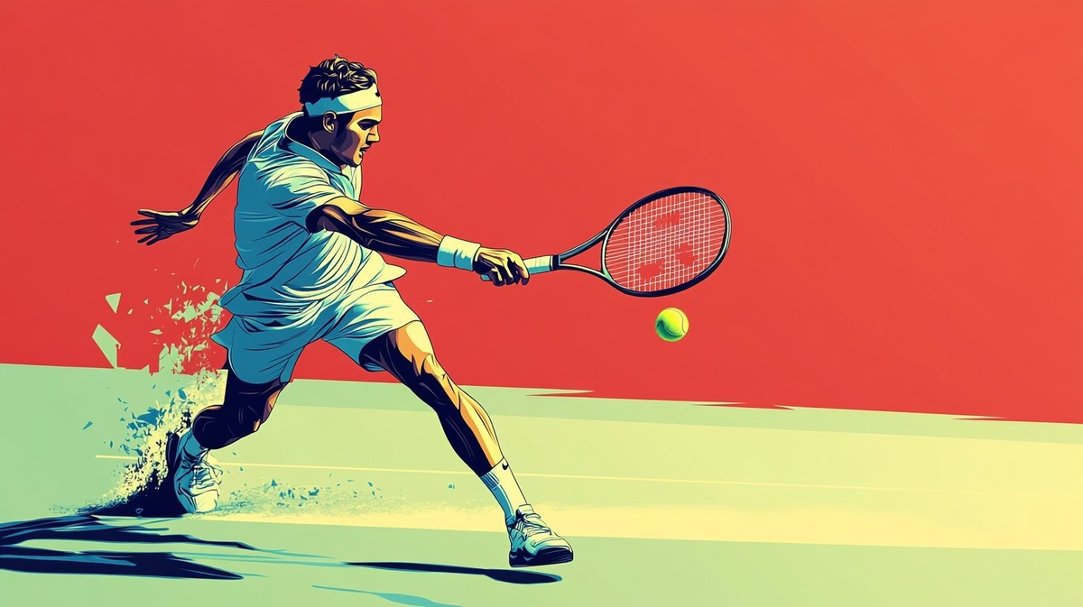 Создано на основе запроса: illustrative rendering of a tennis player returning a volley, professional cartoon, solid line weight