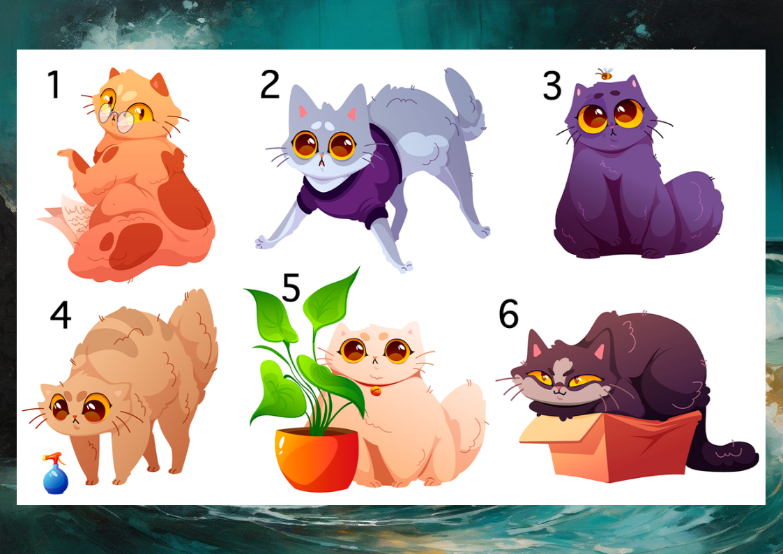 Сегодня предлагаю снова пройти психологический тест, вижу, что многим полюбилась такая практика. Еще больше тестов вы можете найти в рубрике Психологические тесты. Откройте тайны вашей личности. Каждый из нас уникален, но что, если ключ к пониманию своей личности спрятан в… обычном выборе кота? 🐱✨ Перед вами — изображение с несколькими усатыми героями. Присмотритесь: какой из них привлёк ваше внимание сразу? Не анализируйте, не пытайтесь угадать "правильный" ответ — просто доверьтесь первому порыву. Иногда наше подсознание знает о нас больше, чем разум. Этот лёгкий и приятный тест поможет вам лучше понять свои сильные стороны, скрытые черты и даже источники вдохновения. Готовы заглянуть вглубь себя через образ пушистого друга? Тогда вперёд — ваш кот уже ждёт! 😉 Вы доверились интуиции и выбрали того самого котика, который чем-то тронул ваше сердце. Возможно, это была грация, взгляд, поза или просто смутное ощущение: «Этот — мой». И это не случайно! Наш мозг мгновенно считывает символ