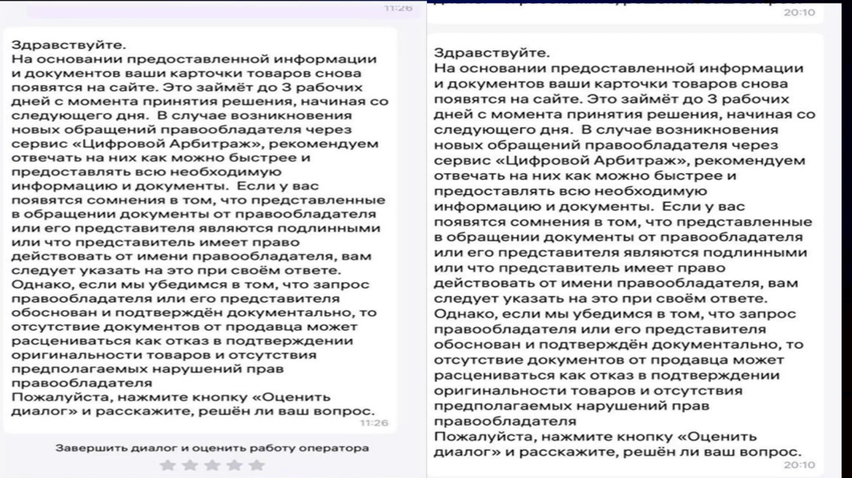 Как показывает моя юридическая практика за последние два года, разблокировать карточку на Вайлдберриз вполне реально. Многие селлеры сегодня сталкиваются с ситуацией, когда им в цифровой арбитраж прилетает претензия от правообладателя. В карточке используется какой-то товарный знак, чужая инфографика или промышленные образцы, в общем, чужая интеллектуальная собственность. Если в течение 10 дней с момента получения этой претензии в цифровой арбитраж не ответить и не устранить нарушение, то карточка будет автоматически заблокирована. Даже если вы устраните все нарушения, но не ответите на претензию, карточку вам отключат. Если у вас вообще нет никаких нарушений и вы тоже ничего не ответите, карточку вам, скорее всего, также отключат, причем в автоматическом порядке. Достаточно большое количество селлеров сегодня просто забывают про это правило, не отвечают на претензию, и карточка оказывается недоступной. Это может привести к существенным убыткам, потому что, во-первых, вы теряете возм