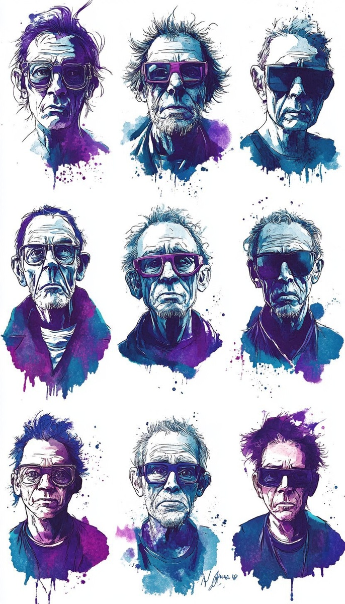 Создано на основе запроса: Nine portraits of skinny and fat, sci-fi losers. Lab technicians, scientists, nerds, geeks. Men and women. Deep, creepy color palette, watercolor and ink, bold lines, spatter, style of Yoji Shinkawa, style of ross tran, style of Masamune Shirow, style of Hideaki Anno, style of Rui Komatsuzaki. --- Автоперевод: Девять портретов тощих и толстых, научно-фантастических неудачников. Хорошо вышло? 🤔 https://dzen.ru/id/65c0c65c86e4f837c27b24d7 #ИИ #AI #нейросеть #midjourney #art