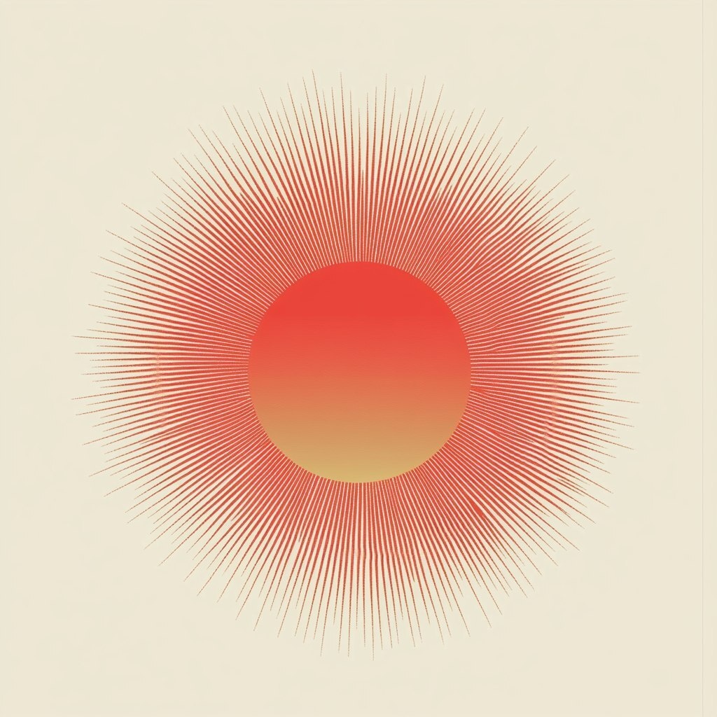 Создано на основе запроса: an abstract illustrated sun using modern day animation style. The sun sits in the centre of the image with a colourless background