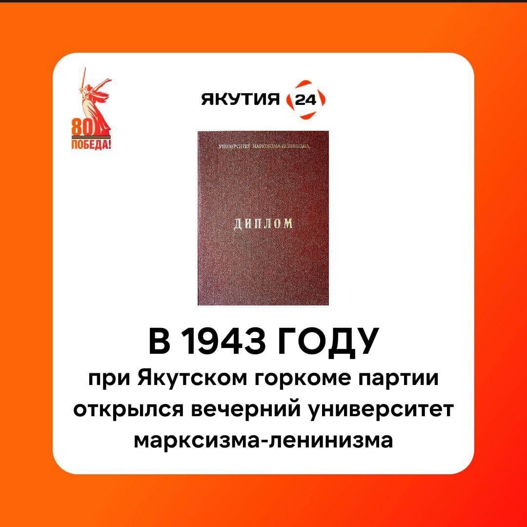 Факт №46: В 1943 году при Якутском горкоме партии открылся вечерний университет марксизма-ленинизма, сыгравший важную роль в подготовке пропагандистских кадров.