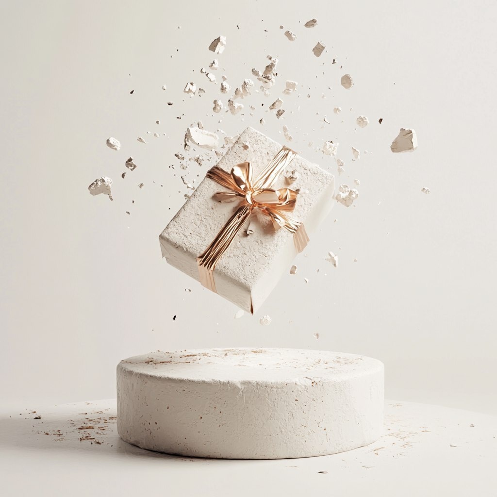 Создано на основе запроса: a clay render of a gift package exploding on a white studio background