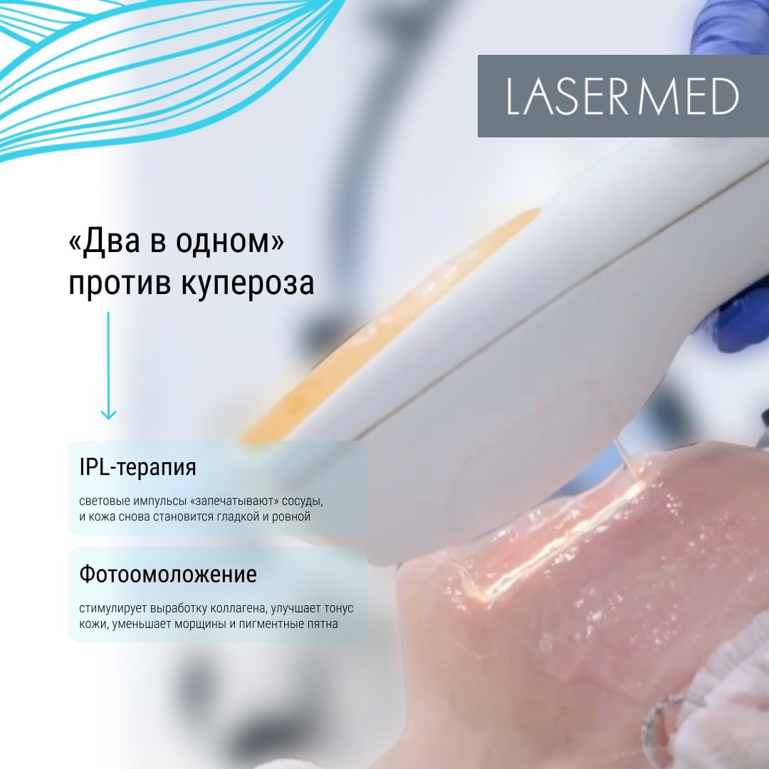 Купероз: как избавиться всего за один раз? #АкцииЛазермед #ОмоложениеЛазермед Мелкие сосудистые сеточки на лице или покраснение кожи — проблема, знакомая каждому третьему человеку. Небольшие сосуды становятся заметнее, кожа теряет ровный тон, появляются пятна. Купероз - не только эстетический дискомфорт, но и сигнал о том, что коже нужна помощь! Врачи клиники LASERMED знают, как справиться с куперозом быстро и эффективно — всего за одно посещение! И главное, с максимальным комфортом для вашей кожи и бюджета. 🔥 Решение: революционная процедура «Два в одном» на аппарате Candela Nordlys: 💓 IPL-терапия против купероза. Мы используем световые импульсы, которые «запечатывают» сосуды, и кожа снова становится гладкой и ровной. 💓 Фотоомоложение. Одновременно с лечением купероза вы получаете омолаживающий эффект. Процедура стимулирует выработку коллагена, улучшает тонус кожи, уменьшает морщины и пигментные пятна. Уже после первой процедуры сосуды станут почти незаметными, а лицо приобре