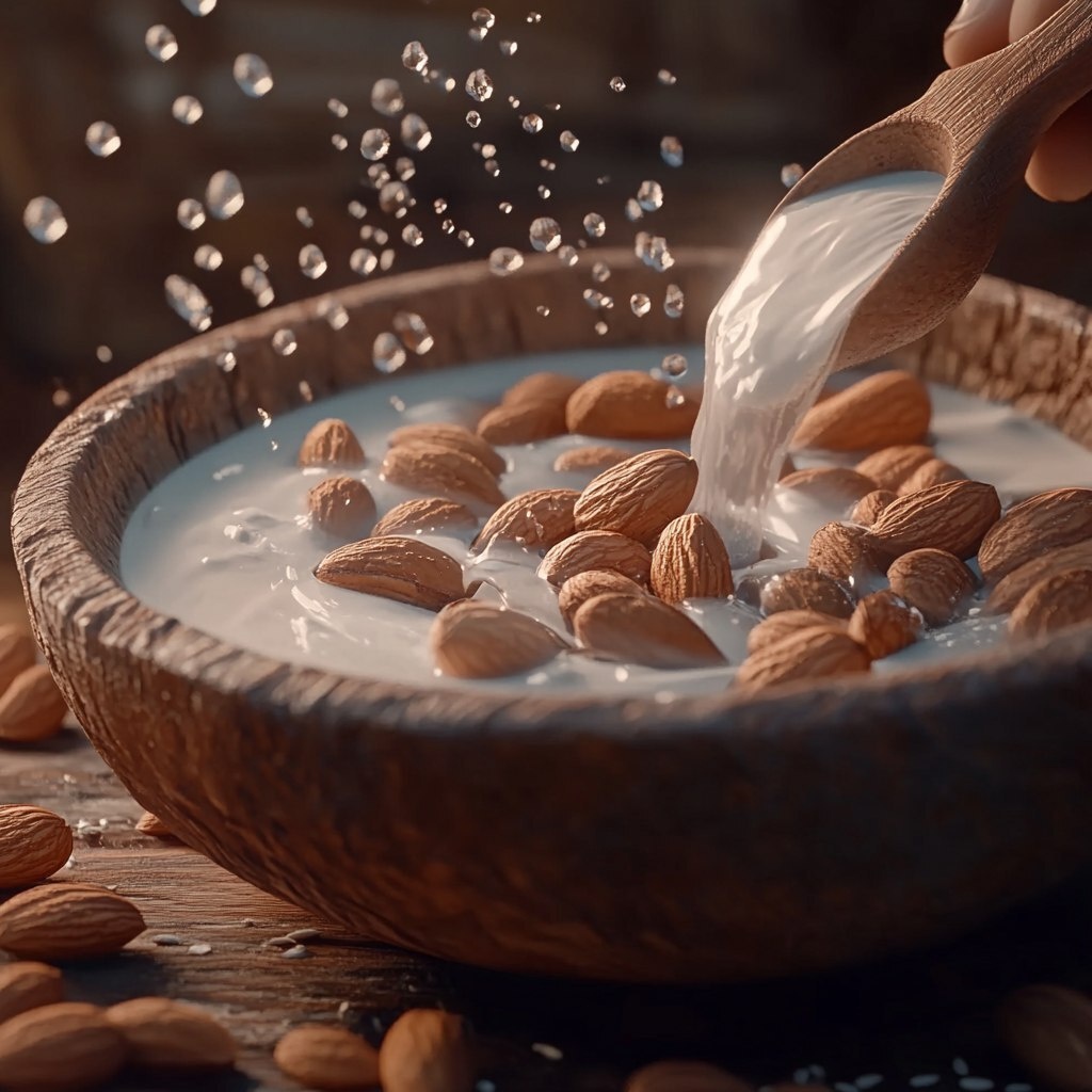 Создано на основе запроса: someone milking almonds, realistic,4k