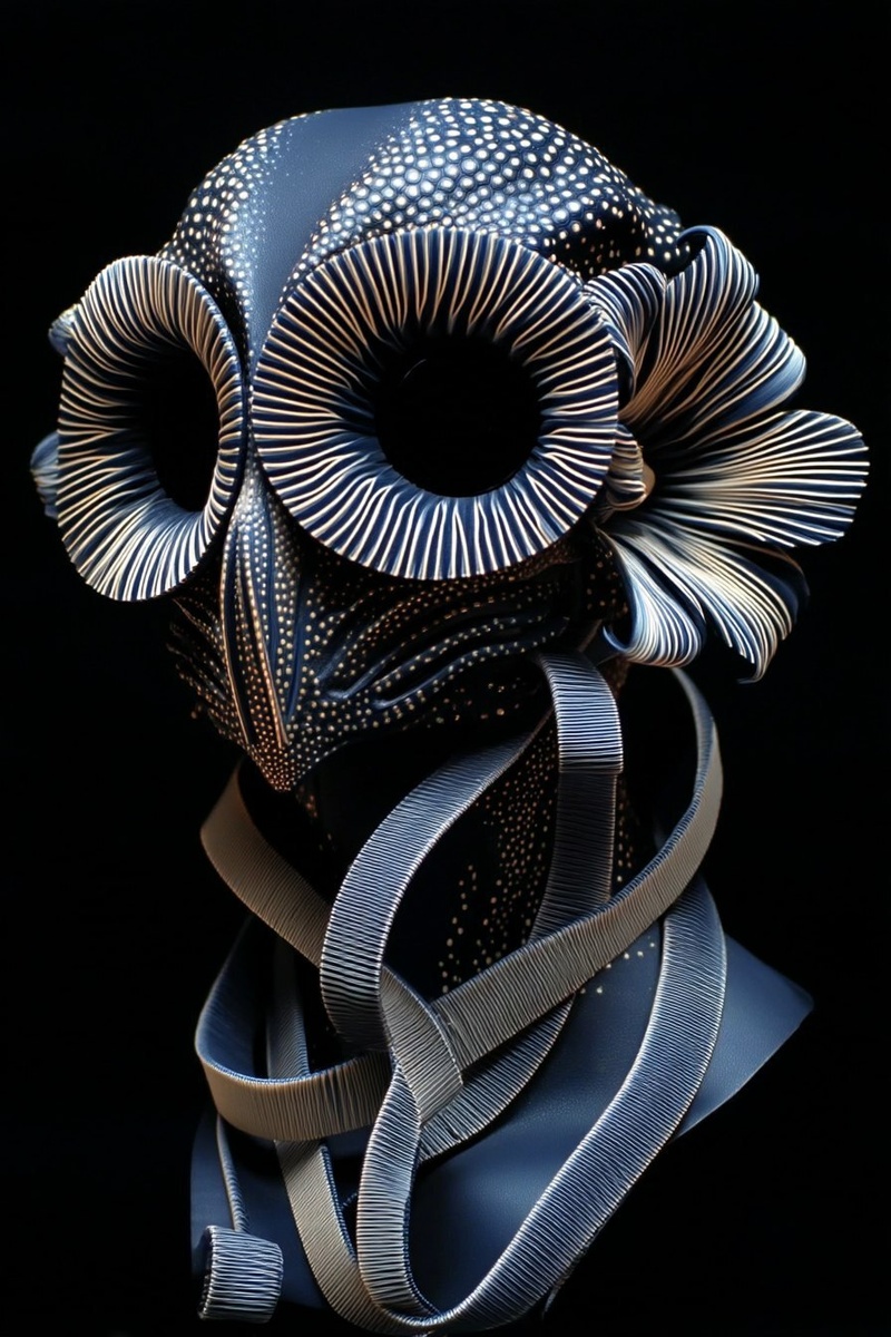 Создано на основе запроса: ribbon slither leather strips, video camera face, fiber optic floral owlsights, camera head --- Автоперевод: лента Слень кожаные полоски, лицо видеокамеры, волоконно -оптическое цветочное сов, головка камеры Необычно вышло? 🤔 https://dzen.ru/id/65c0c65c86e4f837c27b24d7 #ИИ #AI #нейросеть #midjourney #art