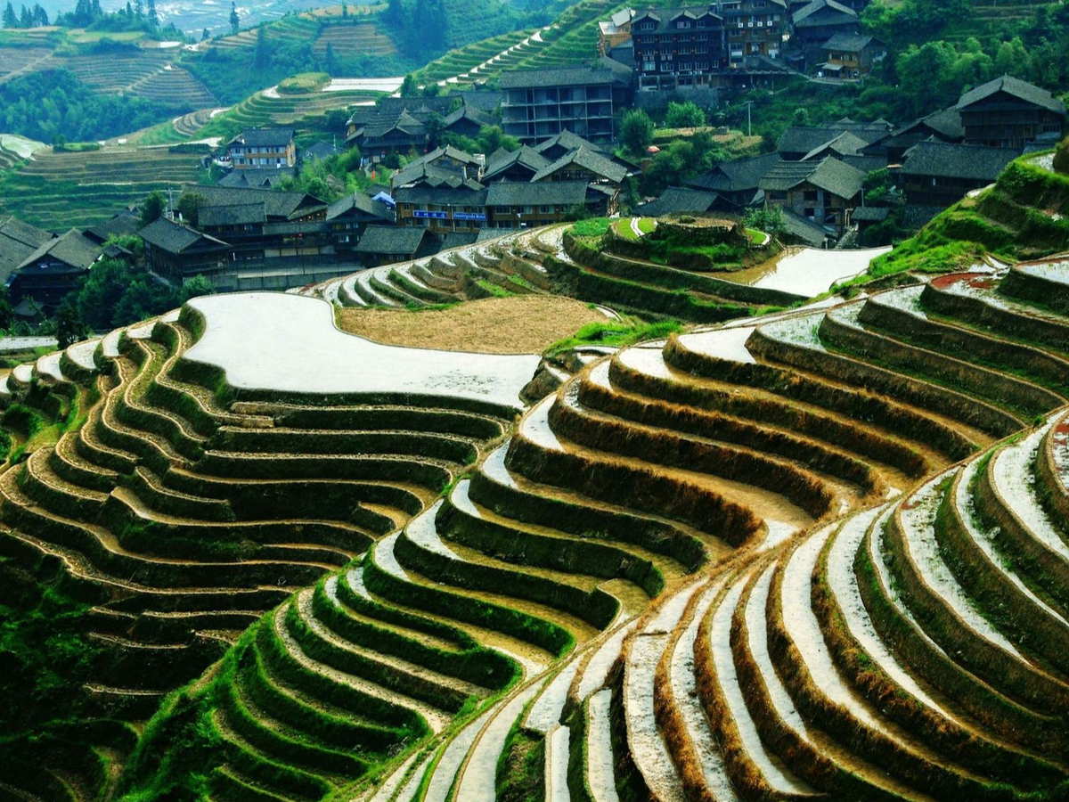 Все видели примеры террасного земледелия в горной местности Китая. На крутых склонах холмов разбиты огромные «ступени» для возделывания сельскохозяйственных культур, в основном для выращивания риса. Красивый и необычный вид.