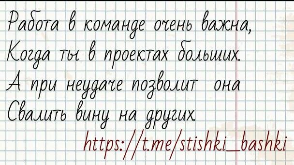 Про команду #всезаодного #стишкиизбашки Стишок каждый день для настроения @stishki_bashki 📹 - видеостишки тут 👈 🙊 - а тут можно комментировать 👈 Поделитесь стишком с друзьями