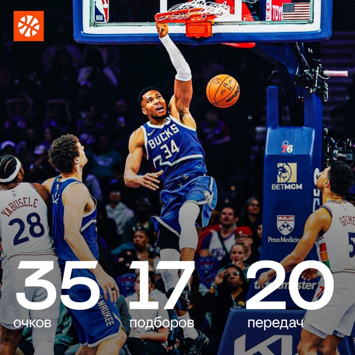 Яннис сегодня выдал вот такую линейку. Он там один что ли за всех играл?