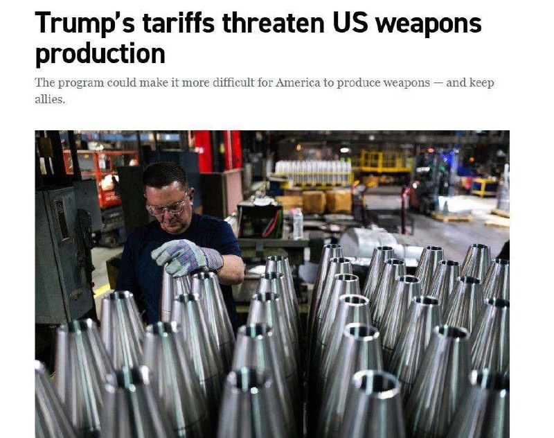 Politico concerned Trump’s tariffs could jeopardize the military-industrial complex The outlet argues that if his program is put into action, it could disrupt global supply chains, raise the cost of American weapons, harm efforts to counter China, and push international partners to seek alternative collaborations. #Politico