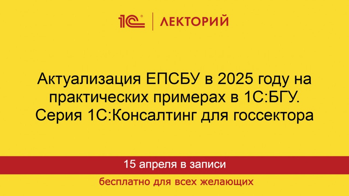 Актуализация ЕПСБУ в 2025 году на практических примерах в 1С:БГУ. Серия 1С:Консалтинг для госсектора Лектор: Фадеева Инна Валерьевна, руководитель направления фирмы «1С», ведущий методист по бюджетному учету, автор многочисленных книг по бухгалтерскому учету в государственных учреждениях серии «1С:Бухгалтерский и налоговый консалтинг». Программа лекции: 🟠изменения в бюджетной классификации; 🟠мероприятия по актуализации ЕПСБУ с 01.01.2025; 🟠ответы на вопросы, заданные при регистрации. Лекция полезна работникам финансовых служб государственных учреждений в части актуализации бухгалтерского учета на предмет применения положений новых нормативных документов в 2025 году. Лекция поможет подготовить информационные базы к составлению полугодовой и годовой отчетности за 2025 год В лекции использованы материалы тиражируемого семинара 1С:Консалтинг - «Актуальные вопросы и изменения в учете и отчетности государственных и муниципальных учреждений в 2025 году. Практикум в 1С:Бухгалтерии гос