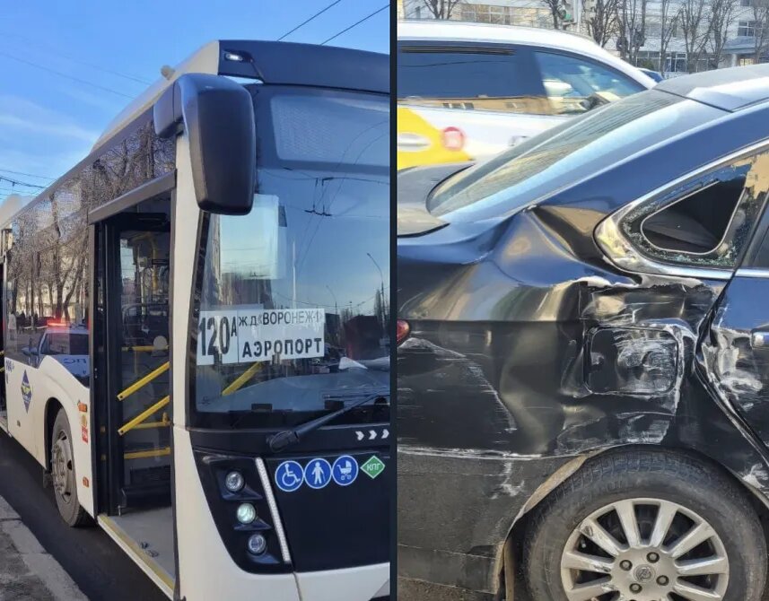 В Воронеже на проспекте Труда пассажирский автобус протаранил иномарку: есть пострадавшие