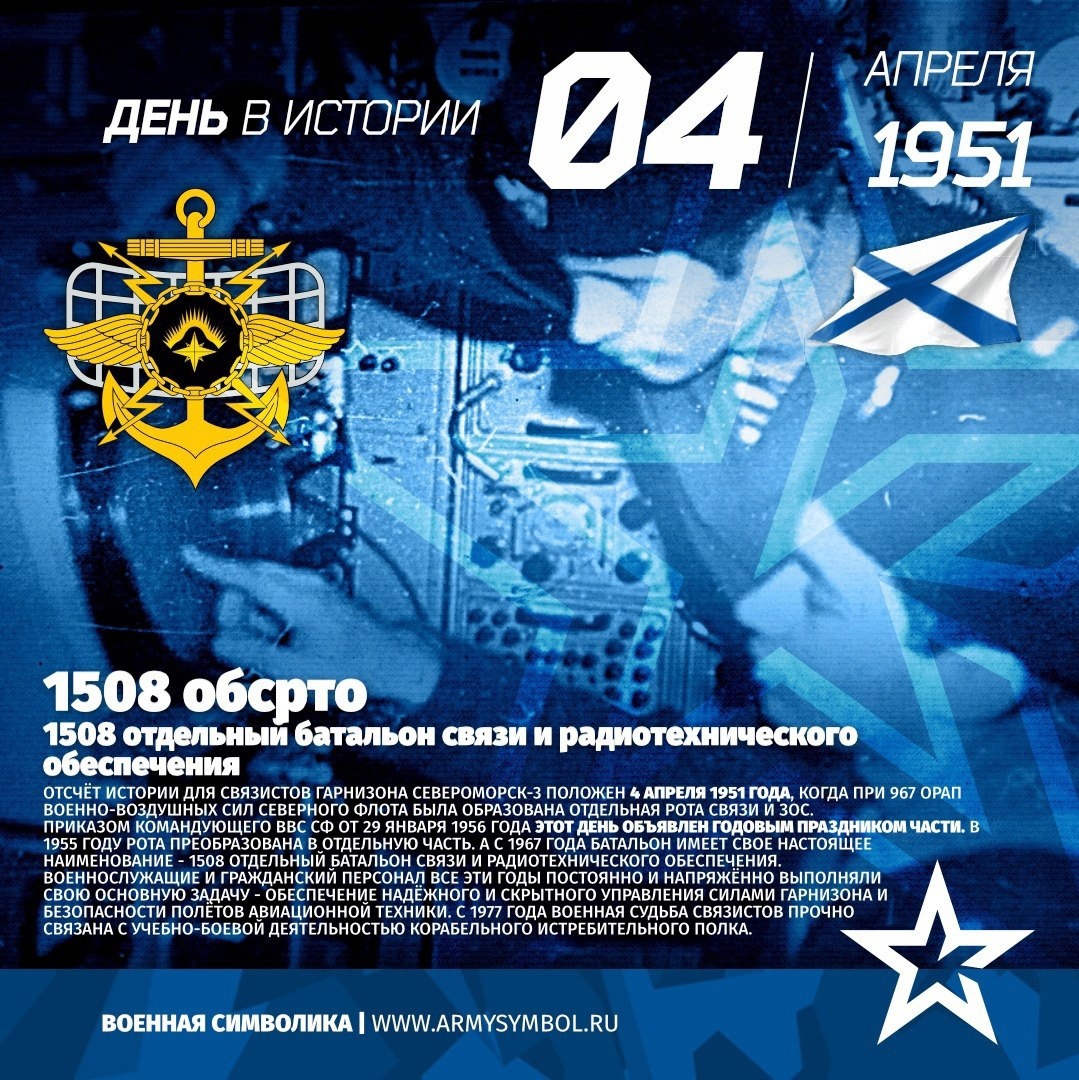 Отсчёт истории для связистов гарнизона Североморск-3 положен 4 апреля 1951 года, когда при 967 орап Военно-Воздушных сил Северного флота была образована отдельная рота связи и ЗОС.