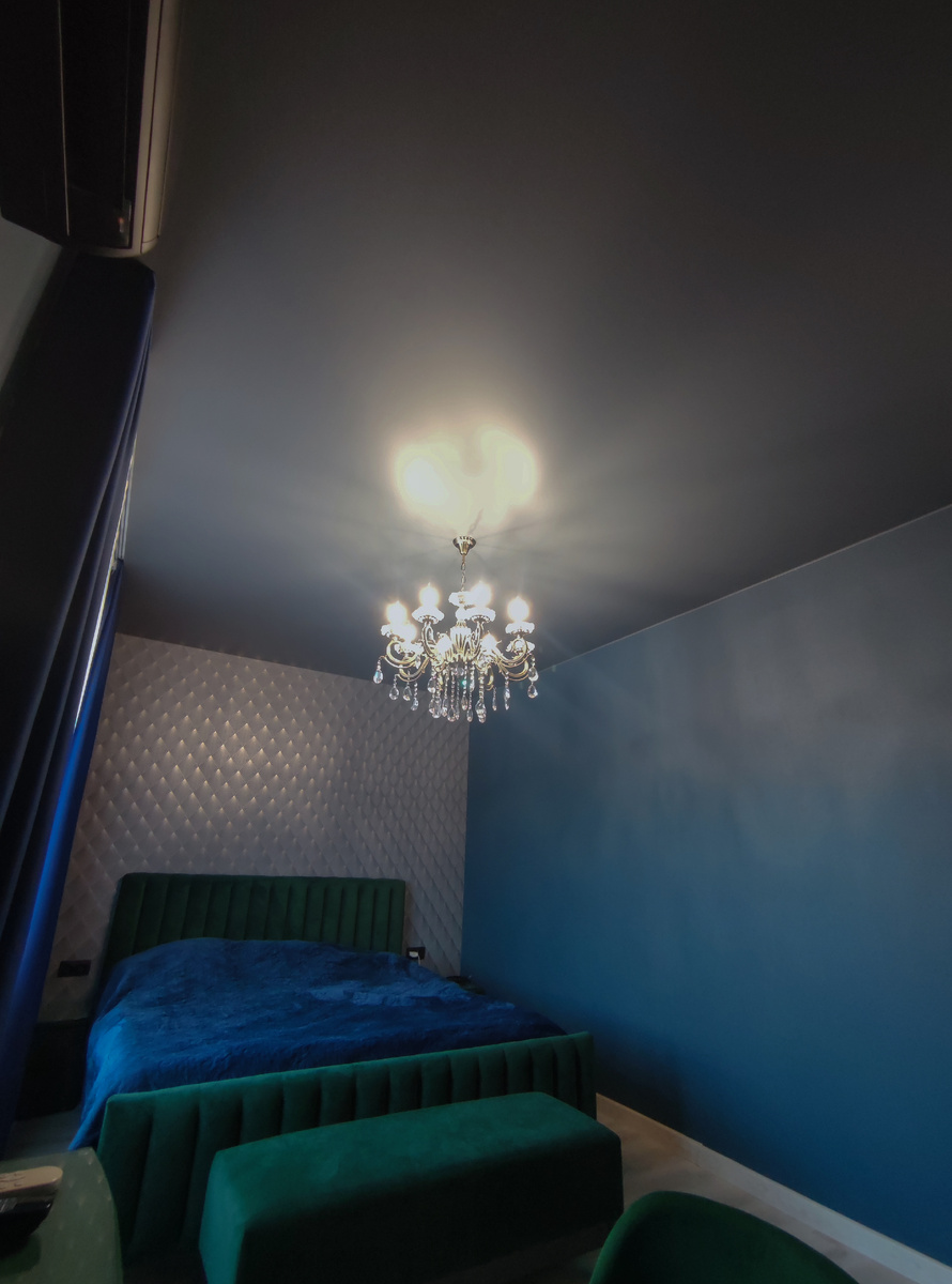 Спальня — это место отдыха и уюта, поэтому важно создать здесь гармоничную атмосферу. Натяжной потолок не только преобразит интерьер, но и поможет скрыть неровности базового перекрытия, защитит от протечек и добавит комфорта. Но какой вариант лучше выбрать? Разбираемся в деталях. Почему подходит для спальни? - Создает мягкое, рассеянное освещение без бликов. - Визуально напоминает идеально ровную штукатурку, добавляя теплоту в интерьер. - Хорошо сочетается с любым стилем: от классики до скандинавского минимализма. Совет: Выбирайте теплые оттенки (бежевый, кремовый, светло-серый) для уютной атмосферы. Почему стоит рассмотреть? - Имеет мягкий шелковистый отблеск, который не раздражает глаза. - Переливается при разном освещении, добавляя интерьеру изысканности. - Хорошо отражает свет, делая комнату светлее без резких бликов. Идея: В спальне с сатиновым потолком можно использовать скрытую LED-подсветку по периметру — это создаст эффект «парящего» потолка и расслабляющую атмосферу. Плюсы д
