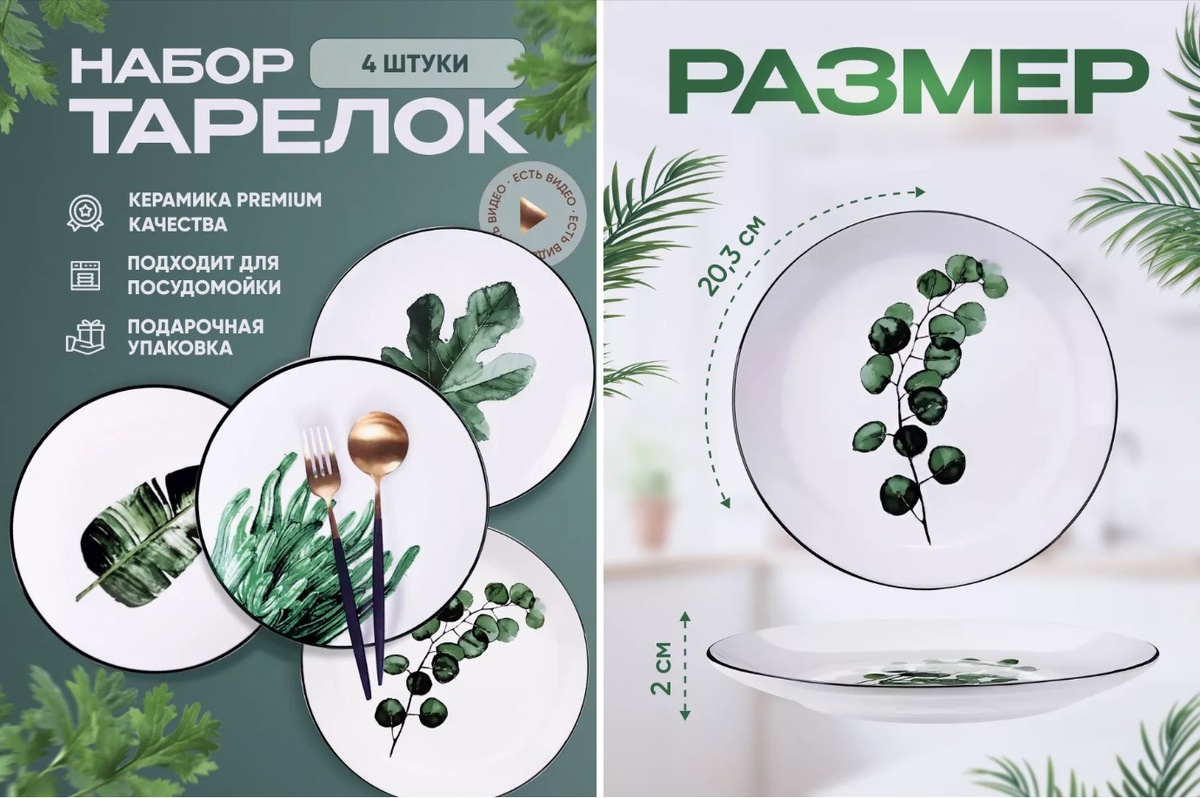 - 4 десертные тарелки (20 см в диаметре, 2,3 см в высоту) — прекрасно подойдут для сладостей и фруктов.