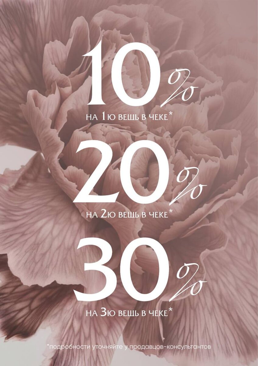 Создайте образ и получите 3 скидки! Объявляем о старте эксклюзивной акции, созданной специально для тех, кто ценит безупречный стиль и умеет делать выгодные инвестиции в свой гардероб. Создайте свой идеальный образ с BUSINESS LINE и получите заслуженные комплименты от нас в виде очень приятных скидок! Приобретая два изделия, Вы получаете скидку 10% на первое и восхитительные 20% на второе. Но это еще не всё! Соберите триумфальный комплект из трех вещей, и мы добавим к Вашим скидкам еще 30% на третье изделие! Акция длится с 3 по 16 апреля. Приходите в магазины BUSINESS LINE, где наши заботливые консультанты помогут Вам создать неповторимый образ, который подчеркнет Ваши индивидуальность и женственность!