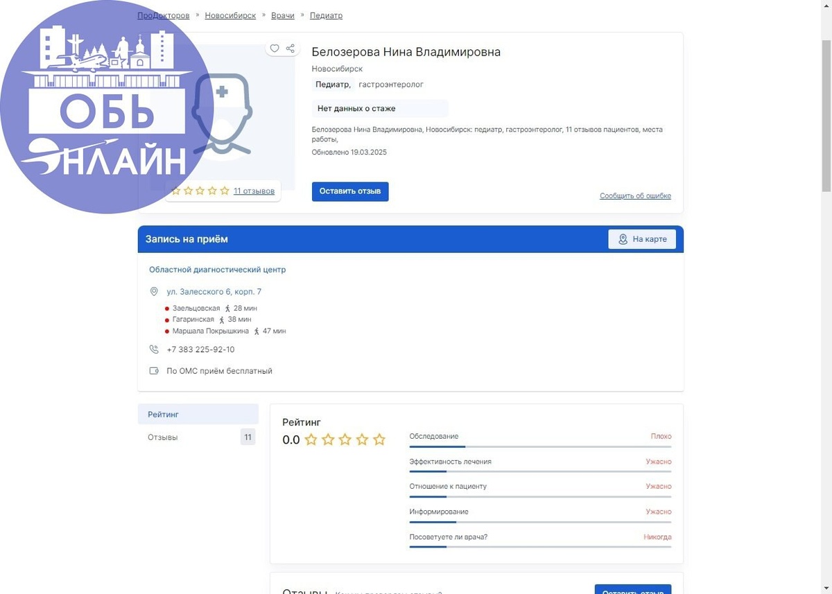 ФИО гастроэнтеролога указаны на скрине - это публичная информация. Что есть, то есть.