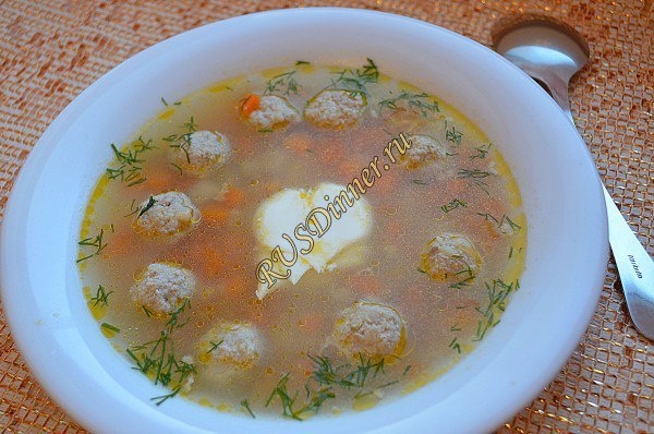 Суп с фрикадельками Ингредиенты: Свинина - 300 гр. Картофель - 200 гр. Лук репчатый - 1 шт. Яйцо - 1 шт. (понадобится только белок) Морковь - 150 гр. Помидоры - 150 гр. Чеснок - 3 зуб. Соль - 20 гр. Перец черный молотый - 10 гр. Рис - 60 гр. (пропаренный длинозерный) Масло растительное - 30 мл. Лавровый лист - 1 шт. Вода - 1600 мл. (горячая) Приправа Карри - 3 гр. Источник: https://rusdinner.ru/page/sup-s-frikadelkami