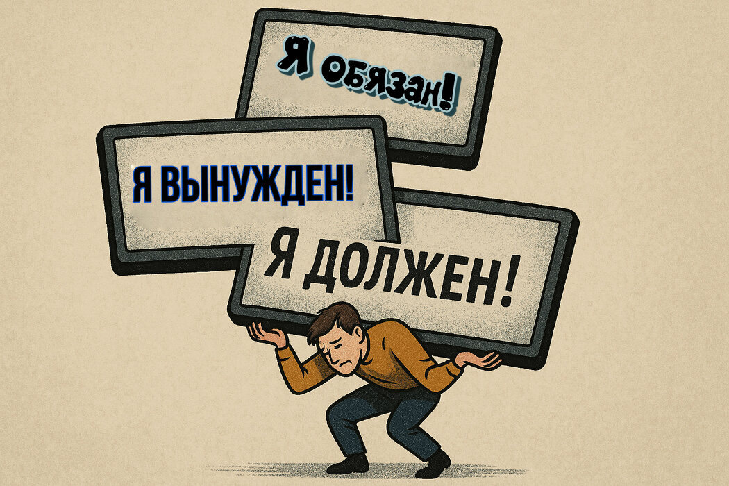 В психологии термин «долженствование» (или «тирания должен/обязан») описывает иррациональные установки, которые мы принимаем за абсолютные обязательства: -«Я должен быть успешным», -«Я должен всегда нравиться людям», -«Я должен делать все идеально». Эти установки формируются под влиянием общества, семьи и воспитания и приводят к стрессу, тревоге и перфекционизму. С другой стороны, «ментальное эхо» – это эффект зацикливания на ошибках, негативных мыслях или травмирующих воспоминаниях. Оно действует как фон, создавая внутренний конфликт и мешая человеку объективно оценивать свою жизнь. Примеры из практики: Кейс с перфекционистом: