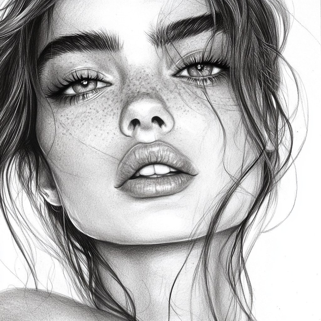 Создано на основе запроса: beautiful portrait drawing girl