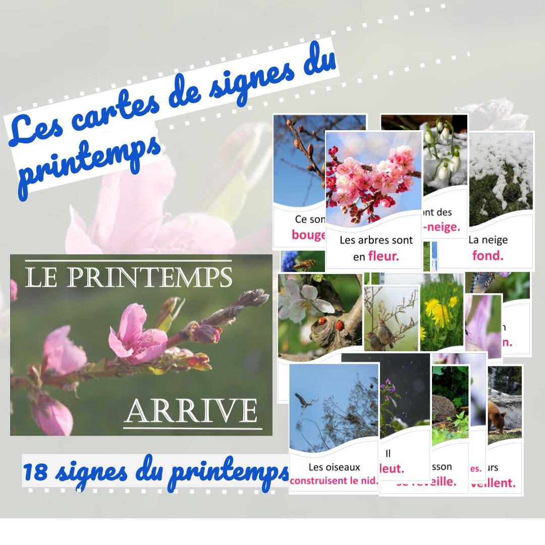 Эти и другие демонстрационные карточки по теме "Признаки весны" на французском языке представлены в методической разработке, которую можно скачать по ссылке.