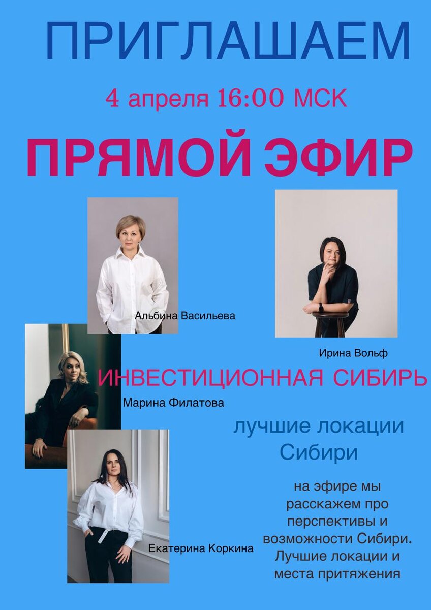💥Уже сегодня в 16-00 МСК Приглашаем вас на прямой эфир 🔸Сибирь – перспективное направление для инвестиций💰💰💰. 🔸Какие стратегии инвестирования работают здесь. 🔸Будет интересно. Заходите.