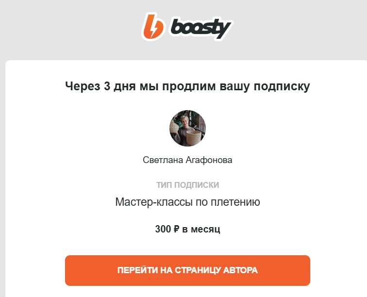 Полезно проверять по утрам почтовый ящик. Сегодня пришло вот такое письмо: А оно мне надо? То, что хотела, я уже сплела. Все остальные мастер-классы просмотрела, что было нужно, скопировала с помощью программы iSpring Free Cam, ни одной новой публикации за это время у Светланы на Boosty не появилось и, судя по всему, ей сейчас вообще не до этого канала - марафон проводит. Так что мне эта подписка не нужна и я пошла ее отменять. Сделать это не просто - а очень просто. В настройках Boosty нужно выбрать подписку Светланы Агафоновой (или любую другую, которая больше не нужна) Жамкаю на "отписаться". Упс, вопросики появились. Можно пропустить, но я отвечу: Меня просят рассказать, по какой причине решила отказаться. Из всех предложенных вариантов выбираю "Автор нерегулярно ведет Boosty, мало нового контента". Я бы сказала, что вообще не ведет - ни одного нового МК за это время не появилось. Ставлю нужную галку. Всё, подписка отменена. Но до 15 апреля доступ к ней у меня все равно есть, то е