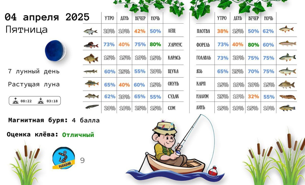 Прогноз клёва на 4 апреля по фазе и состоянию луны ✅ На заметку❗️ Горох любят подлещики и некрупные лещи. Насаживают его на крючок с коротким стержнем, по одной горошине, но лучше по нескольку, так, чтобы жало, будучи спря тано в горошине, при подсечке свободно из нее выступало. Также в качестве приманки следовало бы обратить побольше внимания на картофель, так как его любят многие рыбы 👍