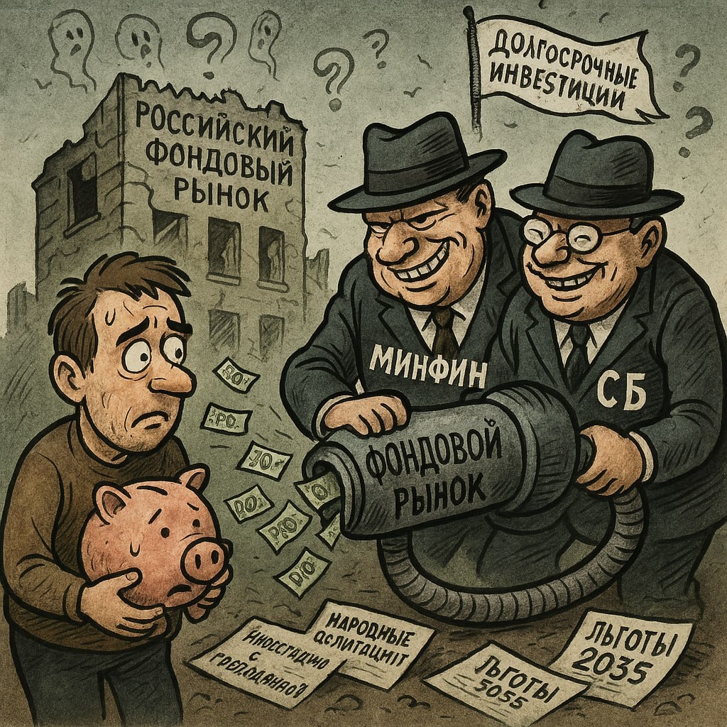 А вы знали, что, оказывается, есть разработанный Минфином и Банком России федеральный проект по развитию финансового рынка, целью которого является увеличение капитализации фондового рынка России и доли в нём долгосрочных сбережений граждан до 40% от общего объема их сбережений? Я вот, например, не знал, а открылась мне сия тайна, когда я, случайно, увидел в СМИ, что так заявил на прошлой неделе замминистра финансов Иван Чебесков, выступая на каком-то форуме. Вроде бы все логично, ведь экономике России для ее развития нужны так называемые длинные деньги, а их у россиян на счетах в банках скопилось на конец 2024 года примерно 53,9 трлн. рублей, при том, что доходы бюджета России на 2025 год – примерно 35,1 трлн. рублей. Вот бы эти деньги, да запустить в рынок, желательно еще и надолго! Вот только стоит ли это делать, или частных инвесторов снова хотят обобрать до нитки? Давайте попробуем разобраться. Новый антирекорд российского фондового рынка Мой многолетний опыт в инвестициях и трей