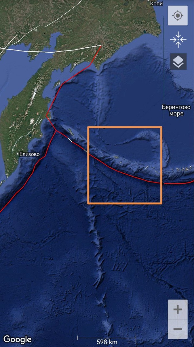 Есть вероятность землетрясения М5-6 по Алеутским островам в отмеченной зоне в течение 9 дней ==== There is a possibility of an M5-6 earthquake in the Aleutian Islands in the marked zone within 9 days.