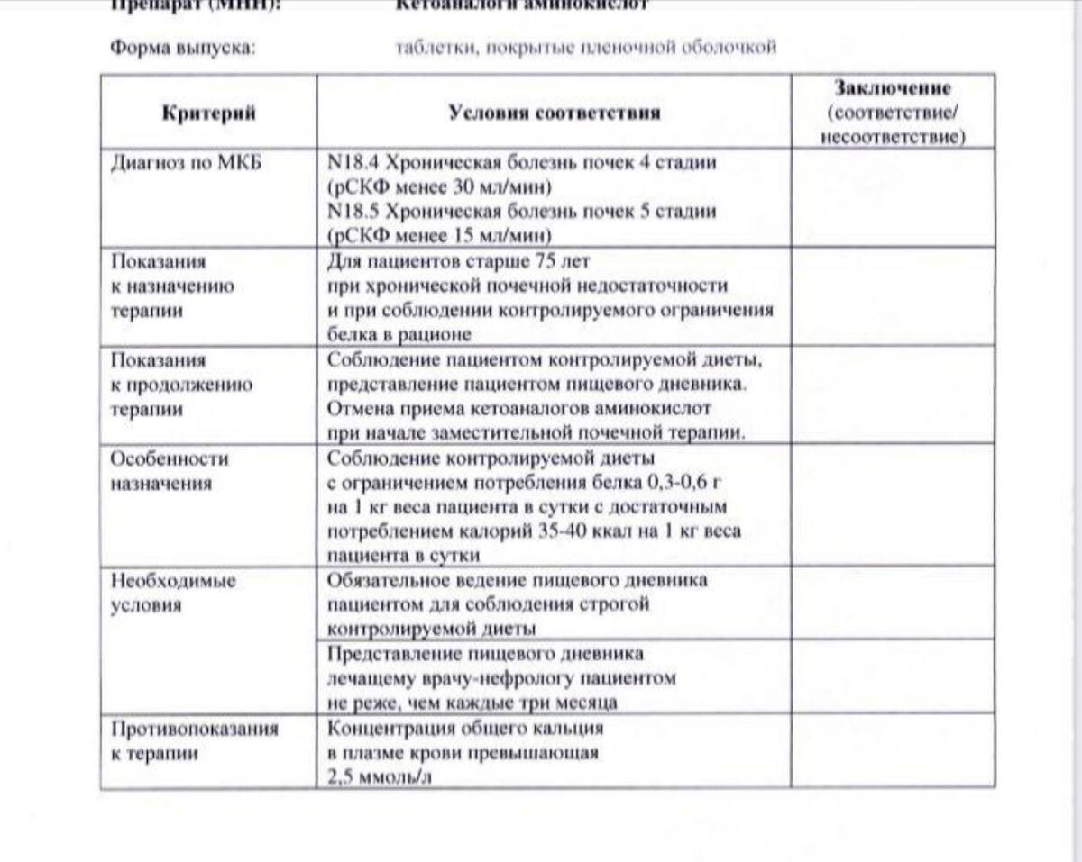 🔣Кетоаналоги аминокислот показаны при ограничении белка в рационе менее 0.6 г/кг/сут. Это вот самое что ни на есть показание, только оно вынесено из показаний в «особенности назначения».