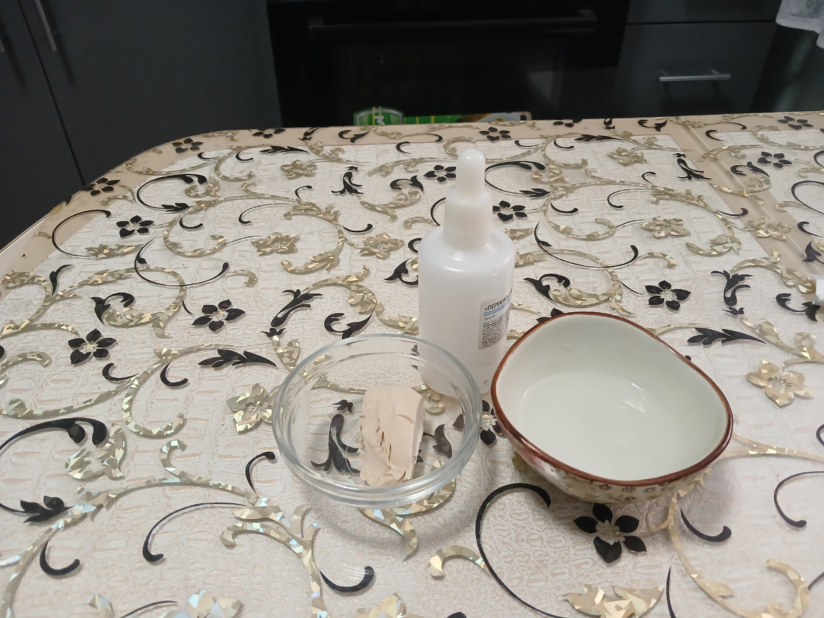 Берем 2 чайные ложечки дрожжей и смешиваем с 4 чайными ложечками 3% перекиси водорода. Подождите, пока осядет появившаяся пенка, а потом хорошенько перемешайте эту чудо-смесь.