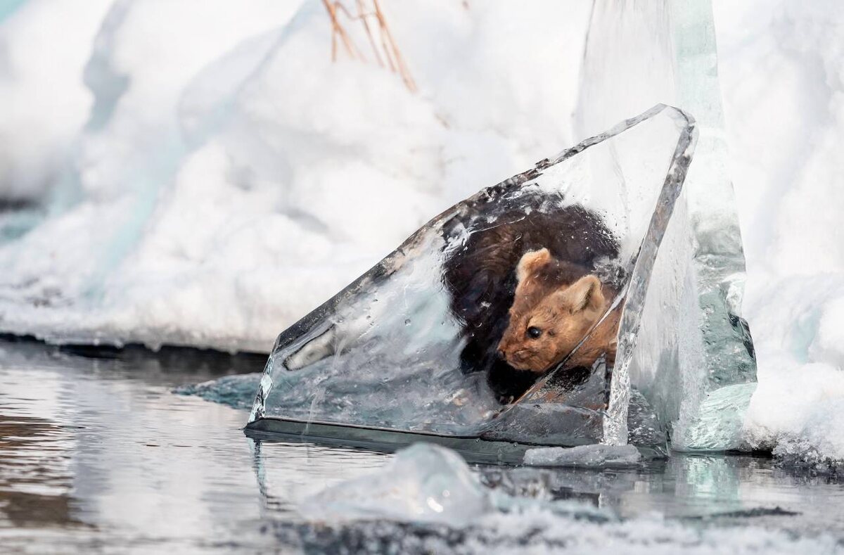 Этот снимок просто завораживает! Баргузинский соболь словно позирует, глядя сквозь чистейший байкальский лёд.