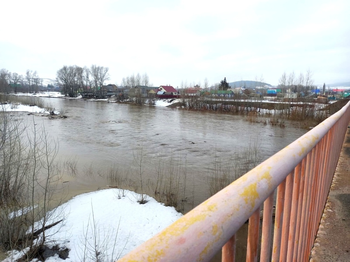 ⬆️ на реке Юрюзань в деревне Чулпан Салаватского района, динамика уровня воды за сутки +43 см, текущий уровень 289 см, выход реки на пойму 500 см;